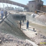 Afin de protéger l’écran et pour permettre l’évacuation des eaux de ruissellement vers le fossé de drainage, l’entreprise SOMATRA-GET a commencé en décembre 2008 les travaux de réalisation de la tête de l’écran.